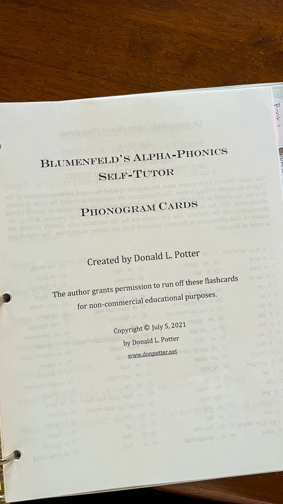 There are multiple other resources put together by Samuel Blumenfeld and others which can accompany this curriculum. We do not use all of them regularly, but we have printed or purchased a couple.