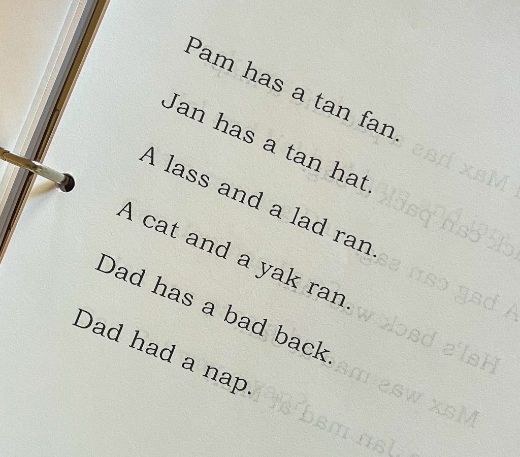 I was so surprised by how many complete sentences can be made using only short-a for the vowel. This builds kids reading confidence quickly because they aren’t dumping information too quickly for it to be absorbed. Blumenfeld really knew what he was doing! “Dad sat.” and “Max was sad and mad.” are a great jumping in point for kids.