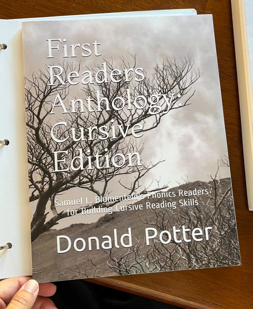 If you would rather NOT print your own books and want to go ahead and purchase printed and bound versions of the Primer and Readers, Donald Potter has published them and has them available on Amazon. And here is the cursive reader book in print again.
